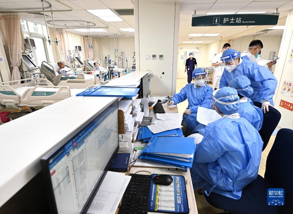 1月21日,北京大學(xué)第一醫院急診科重癥監護室內,醫生們在研判病人健康情況。