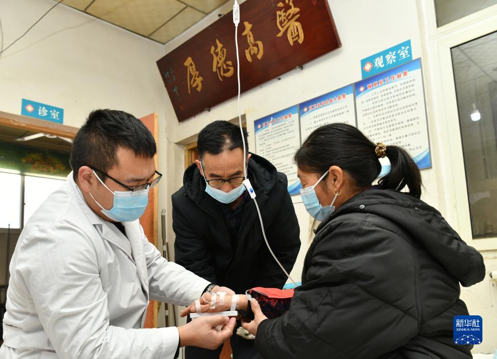 1月20日,南洋陽(yáng)(左一)在村衛生室內為村民輸液。