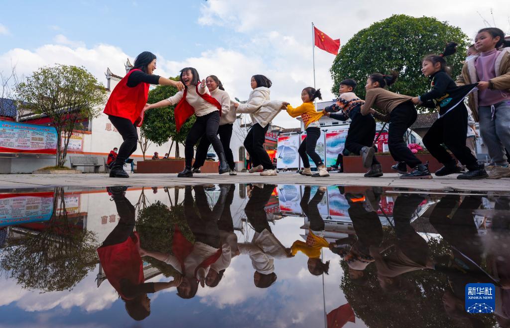 1月13日,江西省新余市渝水區珠珊鎮花田村畫(huà)溪書(shū)院,孩子們在志愿者組織下參與趣味游戲,享受快樂(lè )寒假。