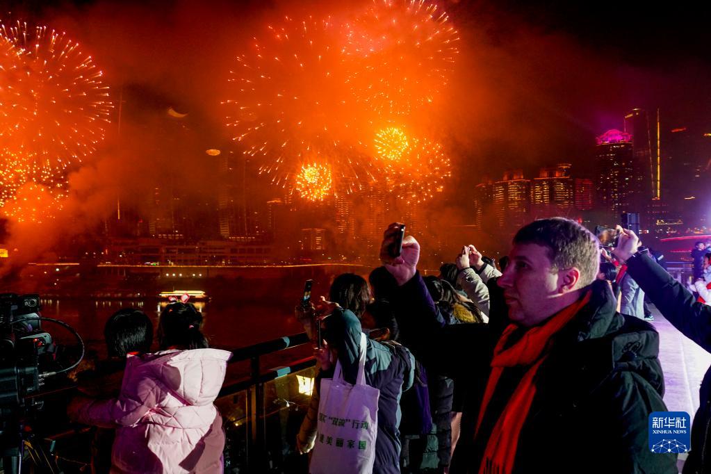 1月21日除夕夜,由重慶市市委、市政府組織開(kāi)展的“新時(shí)代、新征程、新重慶”光影無(wú)人機焰火表演在重慶長(cháng)江、嘉陵江兩江交匯處舉行。3000架無(wú)人機約20分鐘的跨年焰火表演,營(yíng)造出歡樂(lè )祥和、辭舊迎新的濃厚氛圍,為市民和游客送上新春祝福。