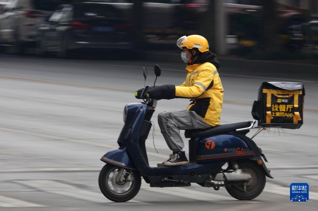 1月21日,在廣西南寧市高新區科德新苑路口,一名外賣(mài)小哥駕駛摩托為顧客送餐。