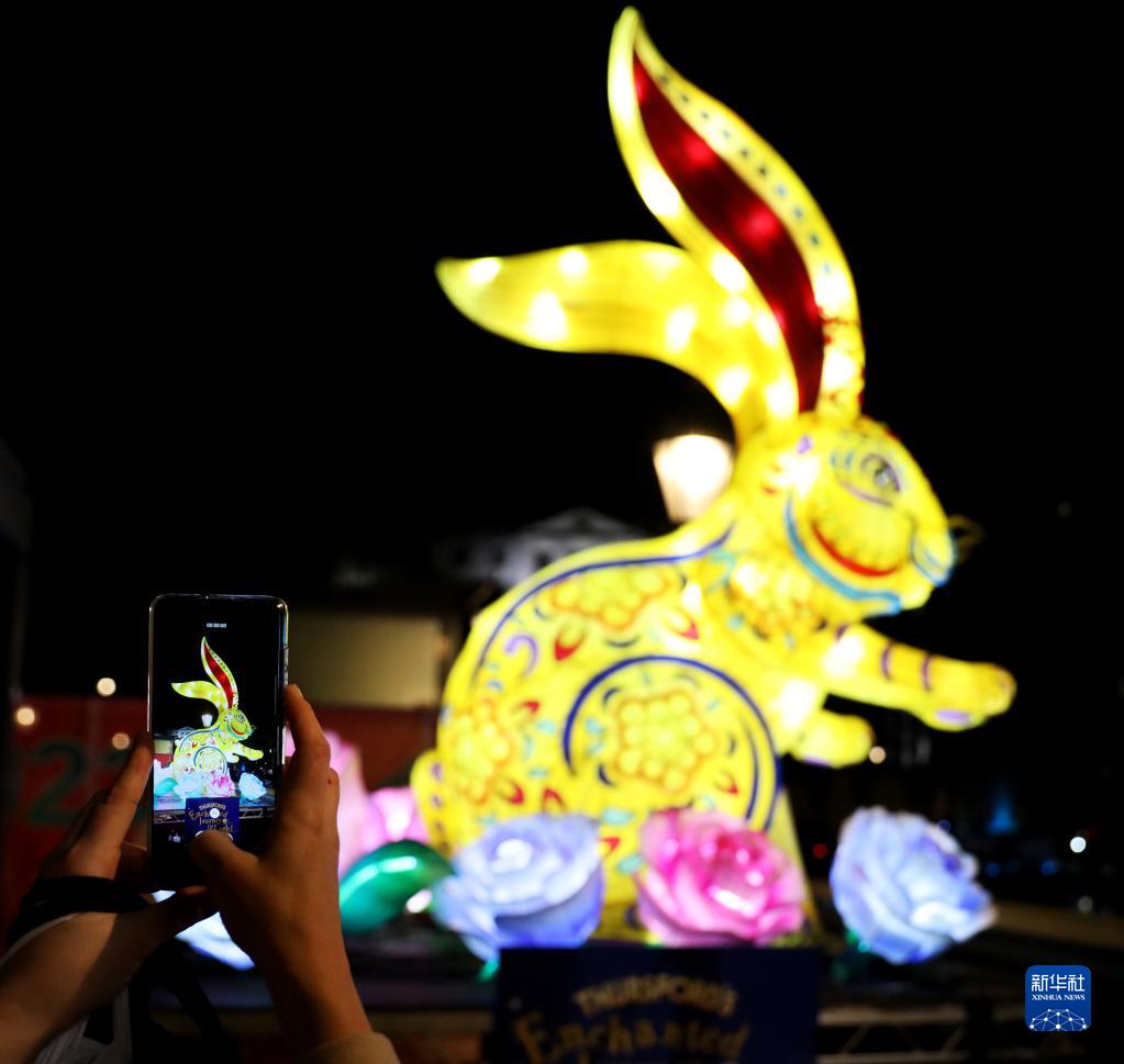 21日晚,倫敦特拉法加廣場(chǎng)點(diǎn)亮兔子彩燈,納爾遜紀念柱的柱身出現“恭賀新禧2023”字樣,迎接中國農歷新年。