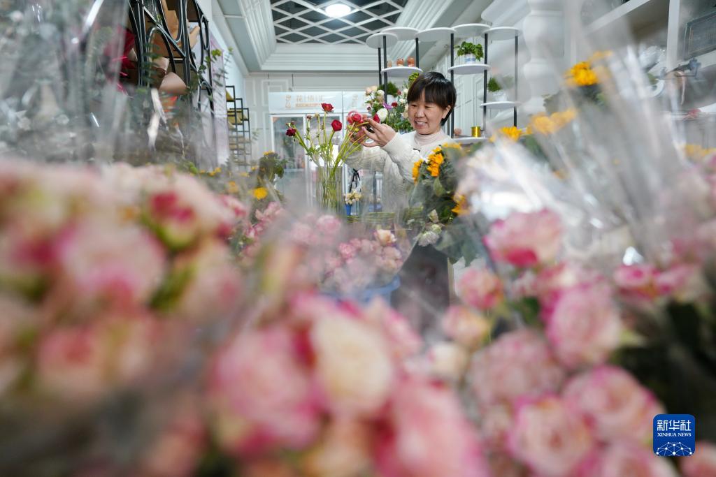 1月22日,河北省邢臺市襄都區一處藝術(shù)工藝品店的工作人員在整理鮮花。