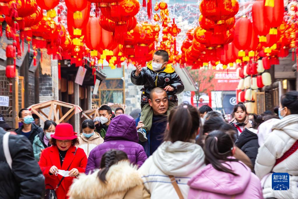 1月22日,市民在貴州省安順市西秀區安順古城歷史文化街區游玩。