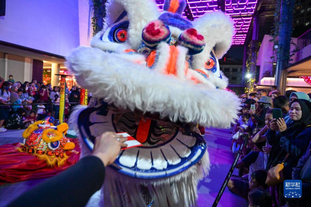 1月21日晚,演員在印度尼西亞雅加達春節慶?;顒?dòng)上表演舞獅。