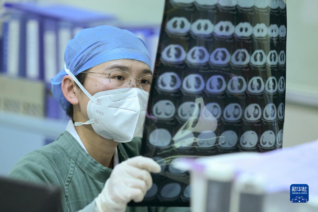 1月21日除夕夜,在安徽醫科大學(xué)第二附屬醫院急診搶救室,醫護人員查看患者的CT片。