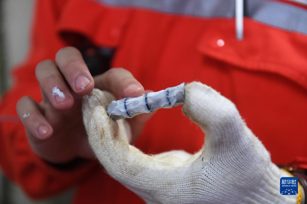 1月20日,一名石油工作者在檢修儀表時(shí)給零件抹潤滑膏。