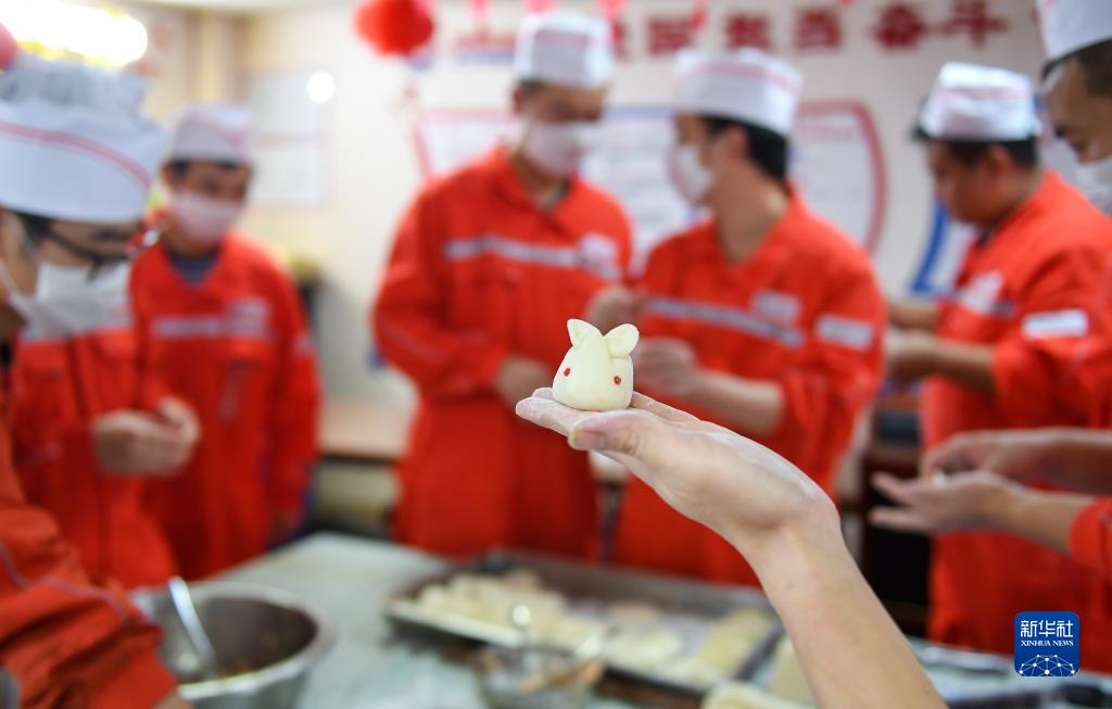 1月20日,在西江23-1平臺餐廳,員工們聚在一起包餃子,準備年夜飯。