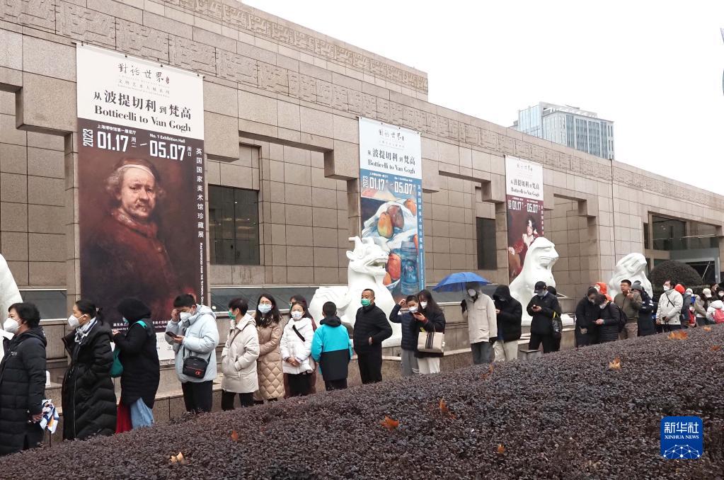 1月22日,觀(guān)眾在上海博物館門(mén)外排隊等候入館參觀(guān)。