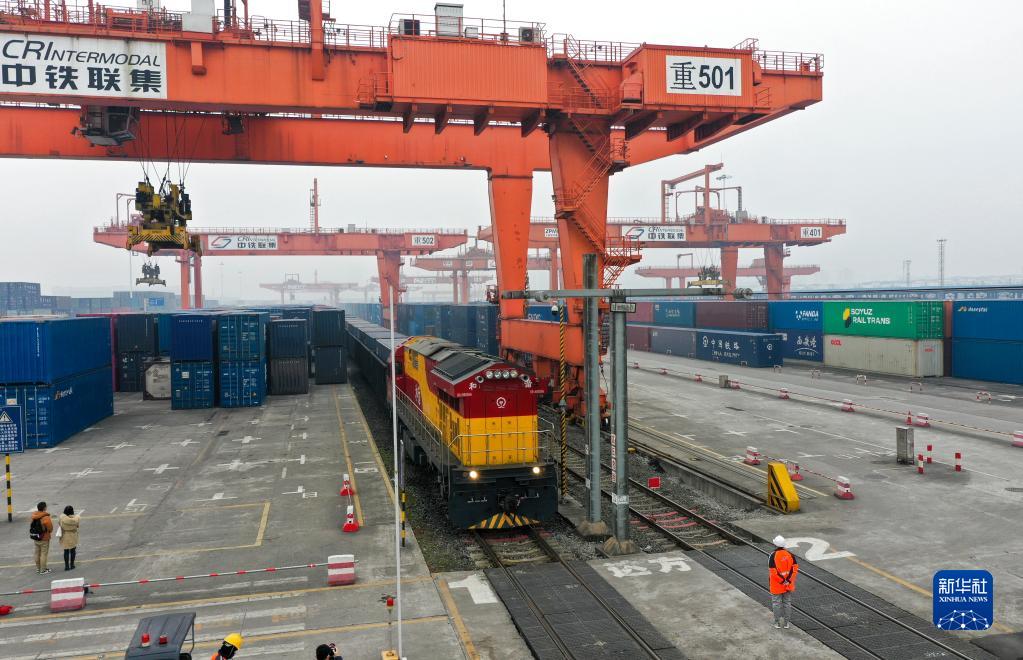 當日是農歷兔年的第一天,兔年首趟西部陸海新通道鐵海聯(lián)運班列從重慶團結村中心站發(fā)出,滿(mǎn)載著(zhù)汽車(chē)、摩托車(chē)、發(fā)動(dòng)機和純堿等共計100個(gè)集裝箱的貨物,將經(jīng)廣西欽州港換乘海船去往印度尼西亞、菲律賓、喀麥隆以及澳大利亞等國家和地區。