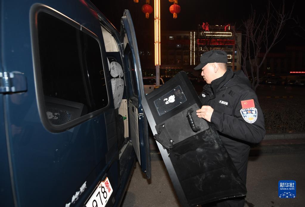 河北唐縣公安局特巡警大隊隊員準備出外勤(1月21日攝)。