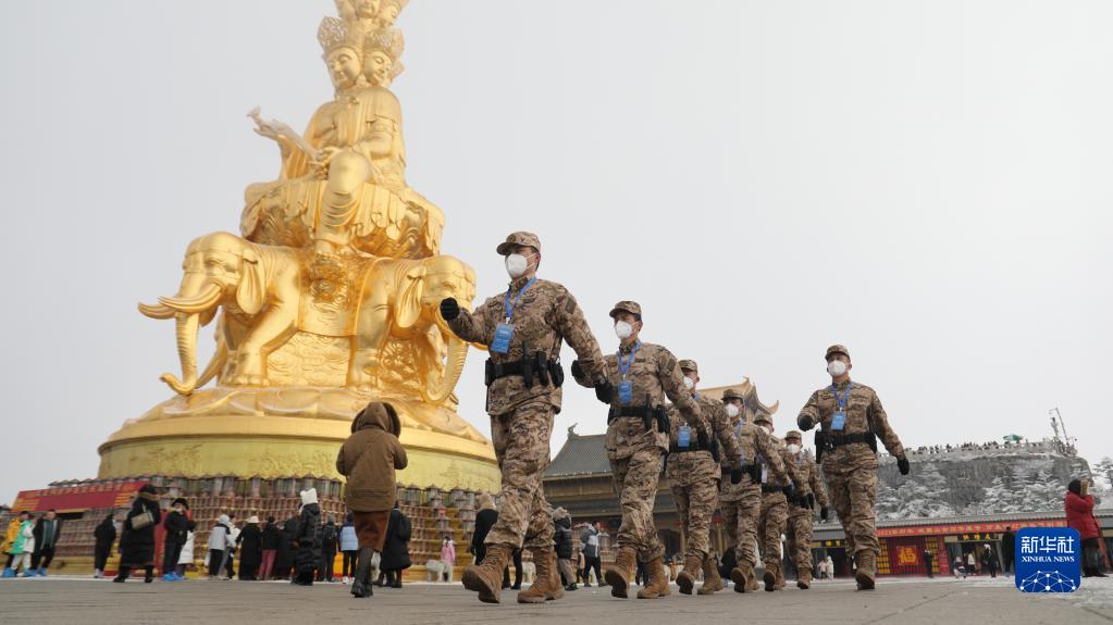 1月22日,武警四川總隊樂(lè )山支隊官兵在峨眉山景區金頂巡邏執勤。