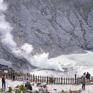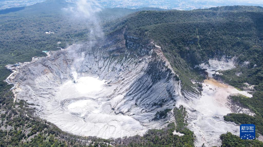這是1月22日在印度尼西亞西爪哇省萬(wàn)隆附近拍攝的覆舟火山(無(wú)人機照片)。