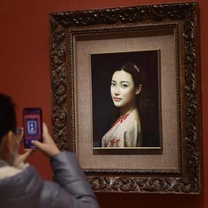 1月22日,參觀(guān)者在中國美術(shù)館拍攝“美在致廣——全國小幅美術(shù)精品展”中的展出作品《回眸》。