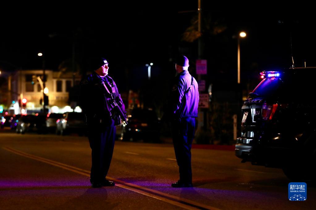 1月22日凌晨,警察在美國加利福尼亞州洛杉磯縣蒙特雷帕克市的槍擊事件現場(chǎng)工作。