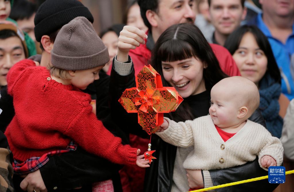 1月22日,在加拿大溫哥華,兩名兒童被中國傳統新春裝飾品吸引。