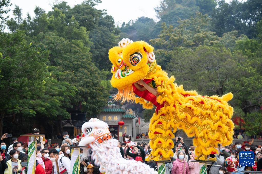 當日是大年初二,澳門(mén)旅游局在媽閣廟前安排了舞龍舞獅、變臉等賀歲活動(dòng),吸引大批市民及游客駐足觀(guān)賞。