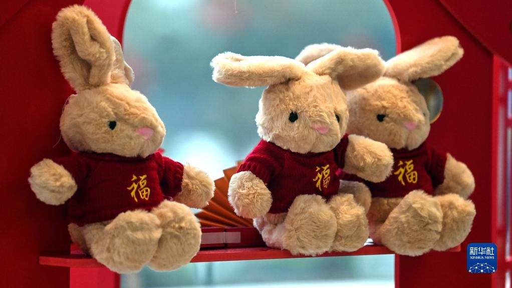 廣西欽州市一家商場(chǎng)展示的兔子飾品(1月23日攝)。