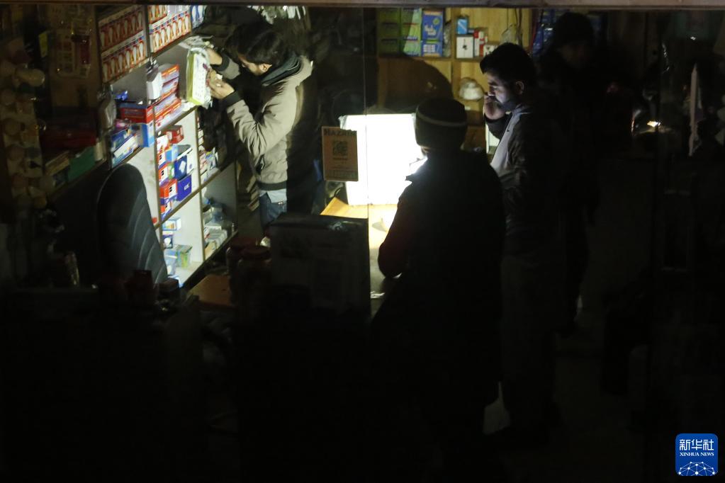 1月23日,在巴基斯坦伊斯蘭堡,一間商店在大規模停電期間營(yíng)業(yè)。