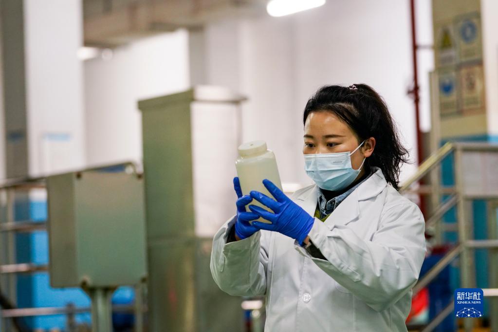 1月24日,重慶市悅來(lái)污水處理廠(chǎng)的化驗員對經(jīng)過(guò)處理后的城市污水水樣進(jìn)行人工目測檢查。