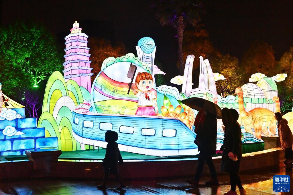 1月23日,游客在江蘇省常州市迪諾水鎮“2023常州燈會(huì )”賞燈。
