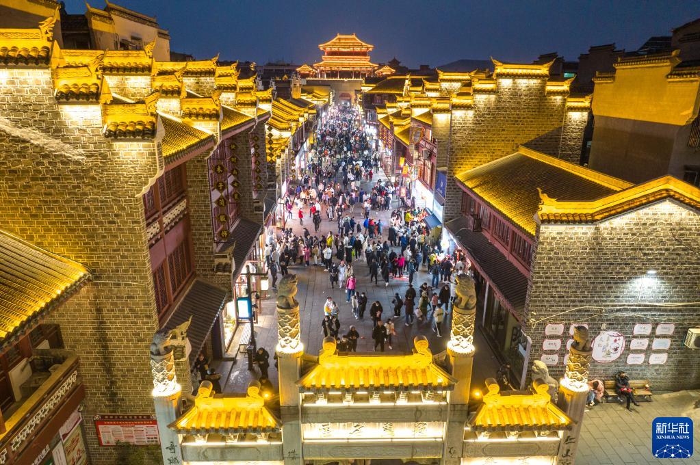 1月23日,市民和游客在湖北襄陽(yáng)古城游玩、賞景(無(wú)人機照片)。