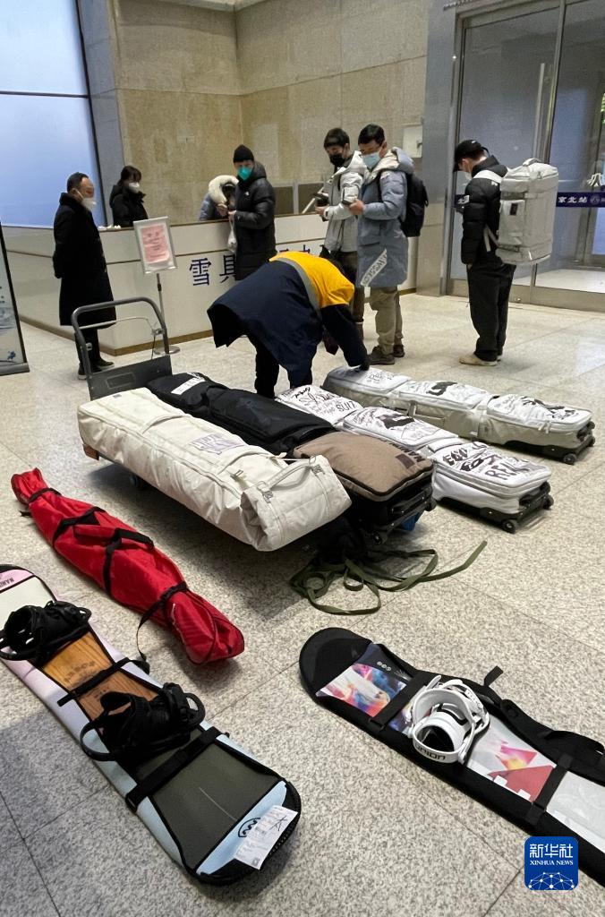 1月24日,滑雪愛(ài)好者在北京北站托運滑雪用具,準備乘坐“滑雪專(zhuān)列”去崇禮滑雪場(chǎng)滑雪休閑。