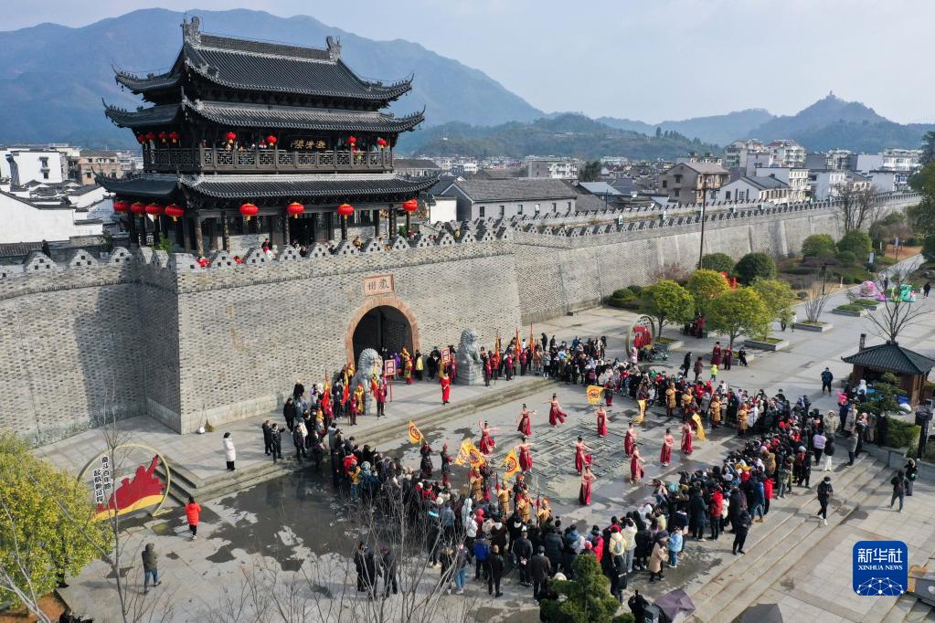 當日,浙江省杭州建德市梅城鎮嚴州古城開(kāi)啟“宋福杭州年”新春系列文旅活動(dòng),包括古城開(kāi)城儀式、“福祿壽三星”送禮、民俗演藝等豐富多彩的活動(dòng),展示獨具魅力的嚴州文化,讓游客感受古城宋韻。