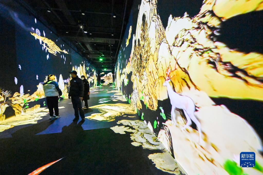 1月24日,游客在山東濰坊青州古城景區體驗“時(shí)空隧道”。