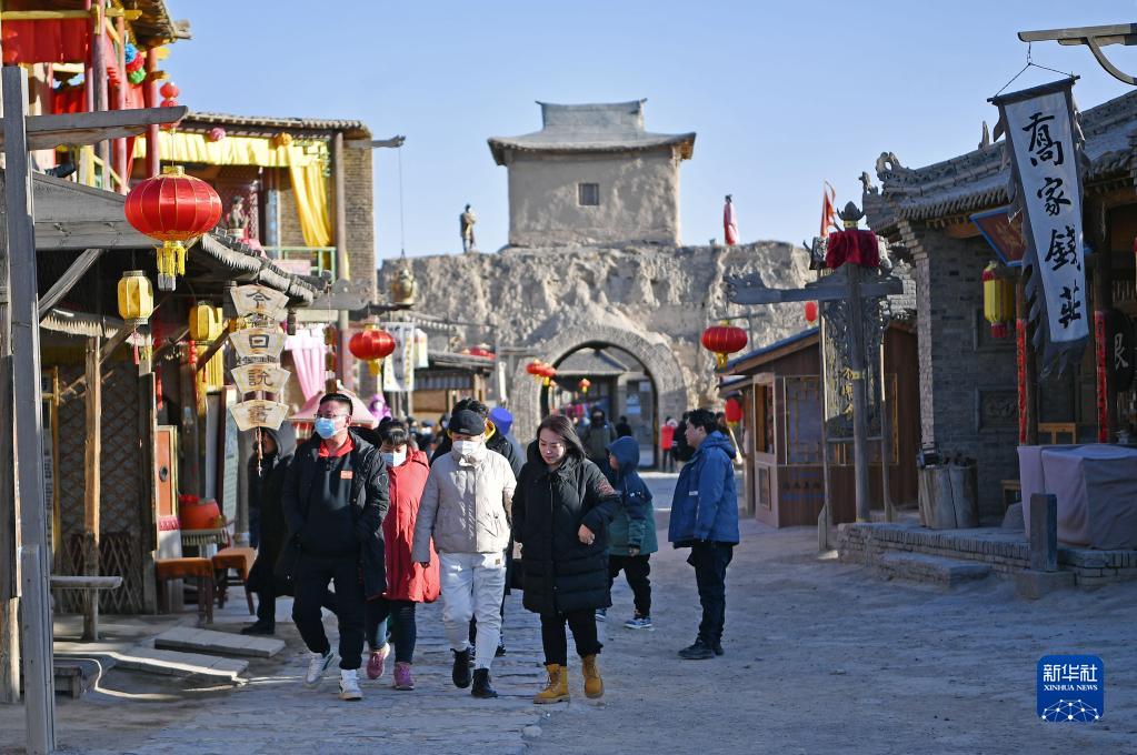 1月24日,游客在寧夏鎮北堡西部影城參觀(guān)游玩。