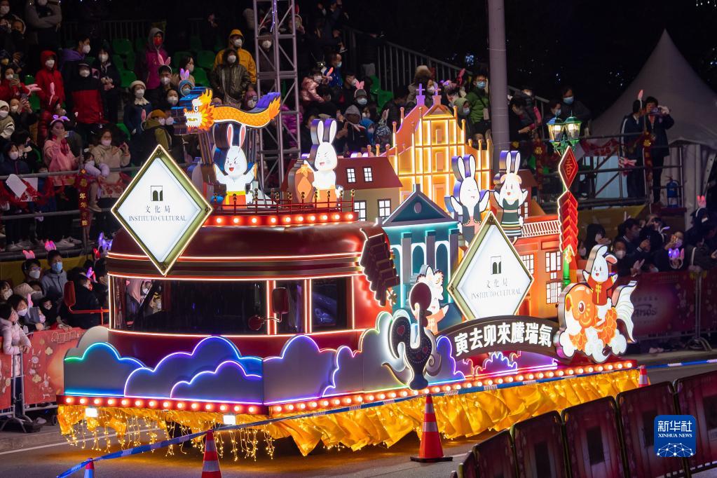 當日,澳門(mén)特區舉辦“兔躍盛世·歡樂(lè )春節”2023年農歷新年花車(chē)匯演。