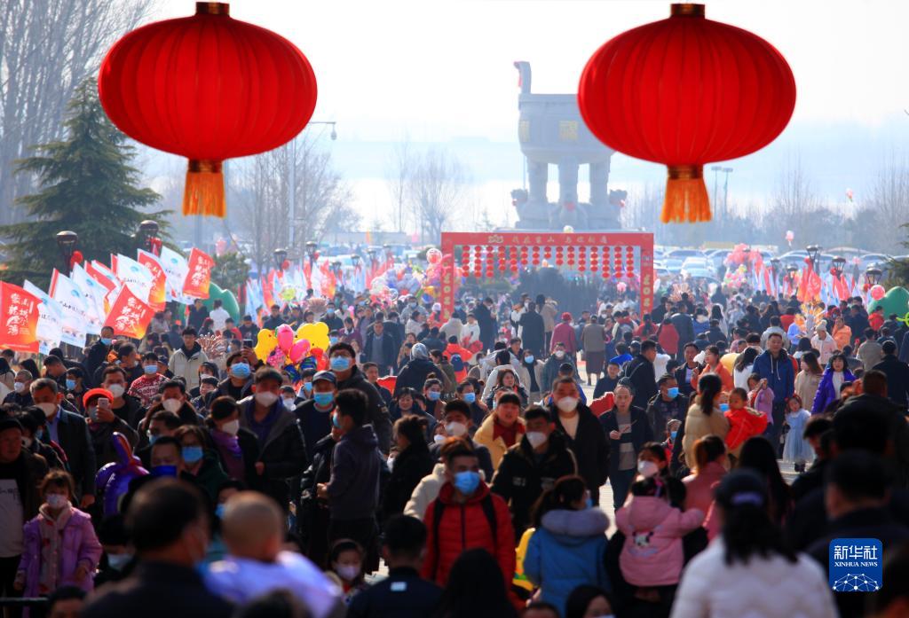 1月22日,游人在山東省臨沂市沂蒙山龜蒙景區新春廟會(huì )上游玩。