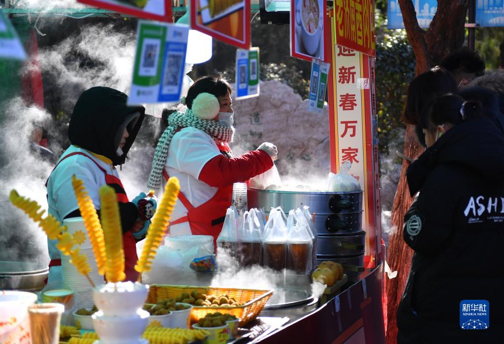 1月25日,游客在濟南千佛山新春游園會(huì )上選購美食。