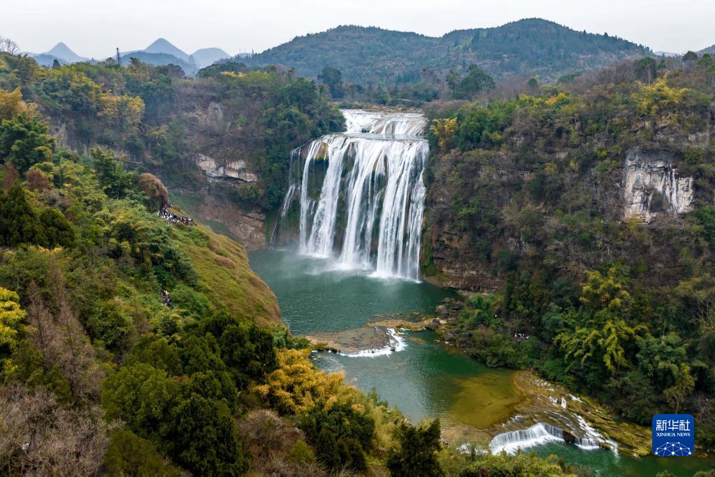 這是1月26日拍攝的貴州黃果樹(shù)瀑布(無(wú)人機照片)。