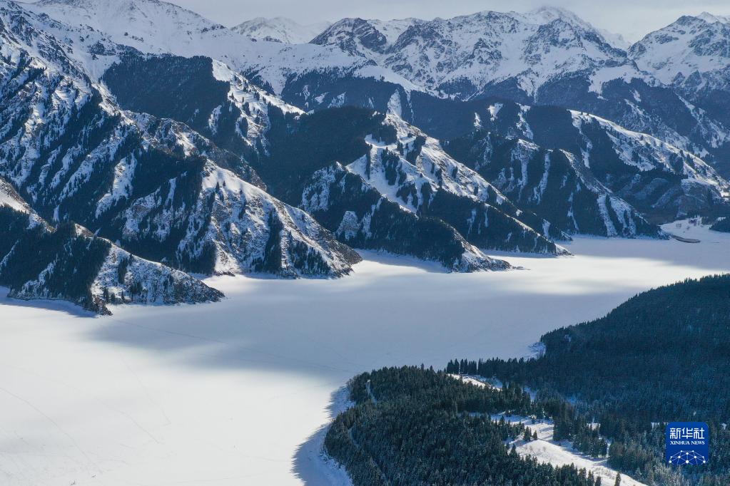 這是1月25日拍攝的新疆阜康市境內天山天池景區(無(wú)人機照片)。