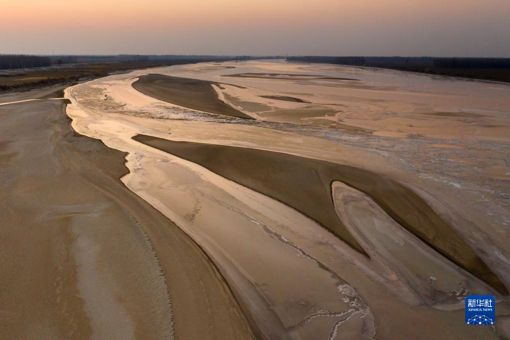 1月25日,落日余暉中,黃河山東高青段流凌與河汊交織,姿態(tài)萬(wàn)千(無(wú)人機照片)。