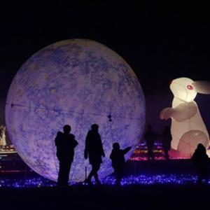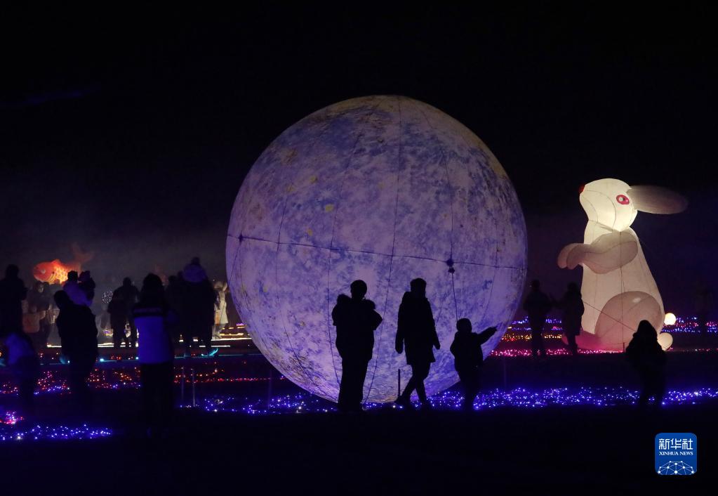 1月25日,游客在河北省石家莊晉州市周家莊鄉第九生產(chǎn)隊欣賞燈光秀。
