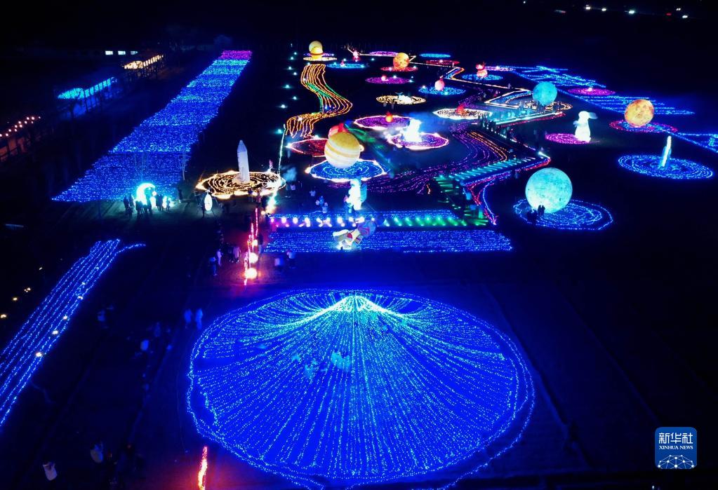 1月25日拍攝的河北省石家莊晉州市周家莊鄉第九生產(chǎn)隊的燈光秀(無(wú)人機照片)。