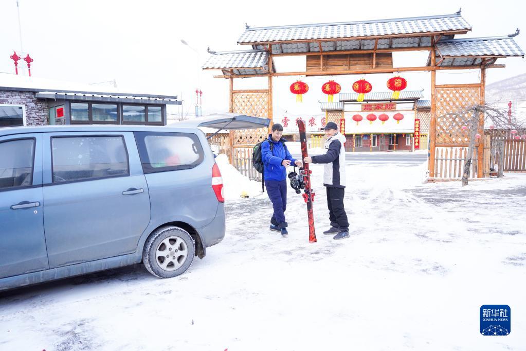 邵鋒(右)接雪友回到自家民宿里(1月21日攝)。