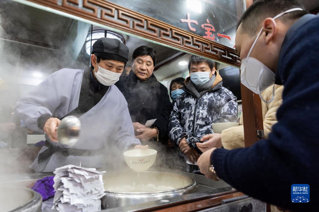 1月26日,游客在上海市閔行區七寶老街購買(mǎi)湯圓。