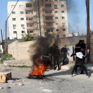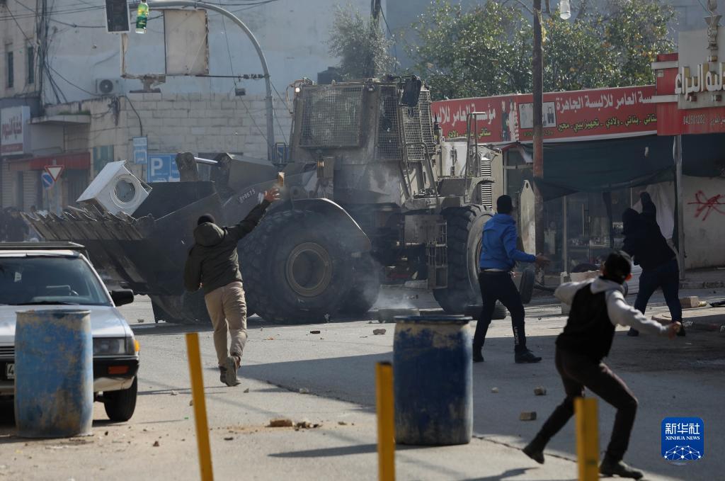 1月26日,在約旦河西岸北部城市杰寧,巴勒斯坦抗議者與以色列軍隊發(fā)生沖突。