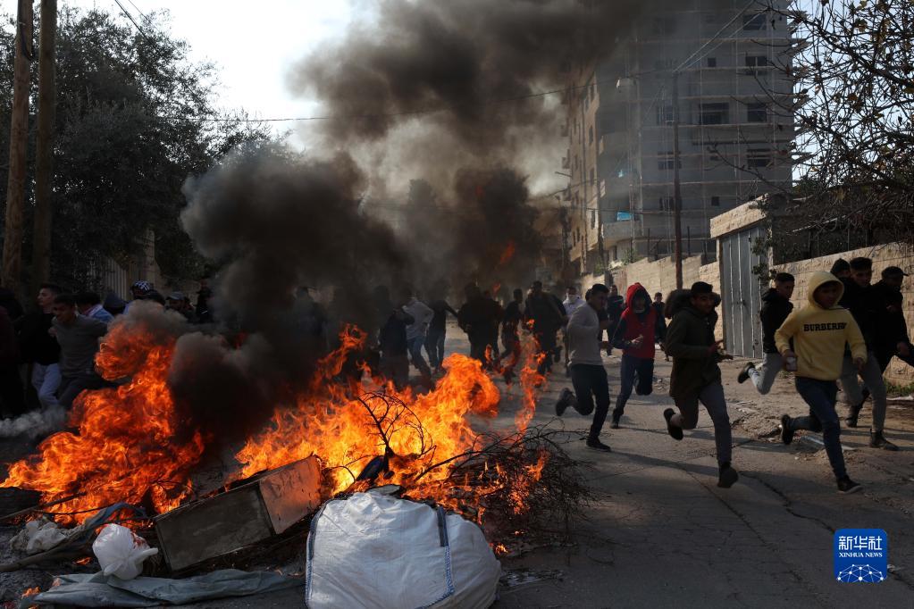 1月26日,在約旦河西岸北部城市杰寧,巴勒斯坦抗議者與以色列軍隊發(fā)生沖突。