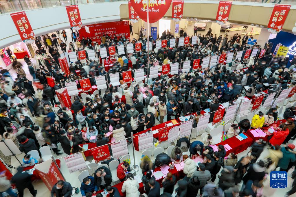 1月27日,求職者在山東省滕州市2023年春風(fēng)行動(dòng)暨返鄉人員專(zhuān)場(chǎng)招聘會(huì )上尋找適合自己的就業(yè)崗位。