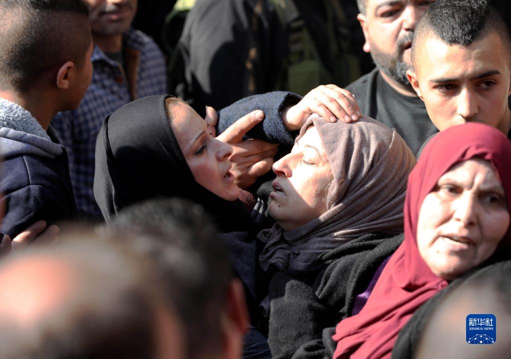 1月26日,人們在約旦河西岸城市杰寧參加被以色列軍隊打死的巴勒斯坦人的葬禮。