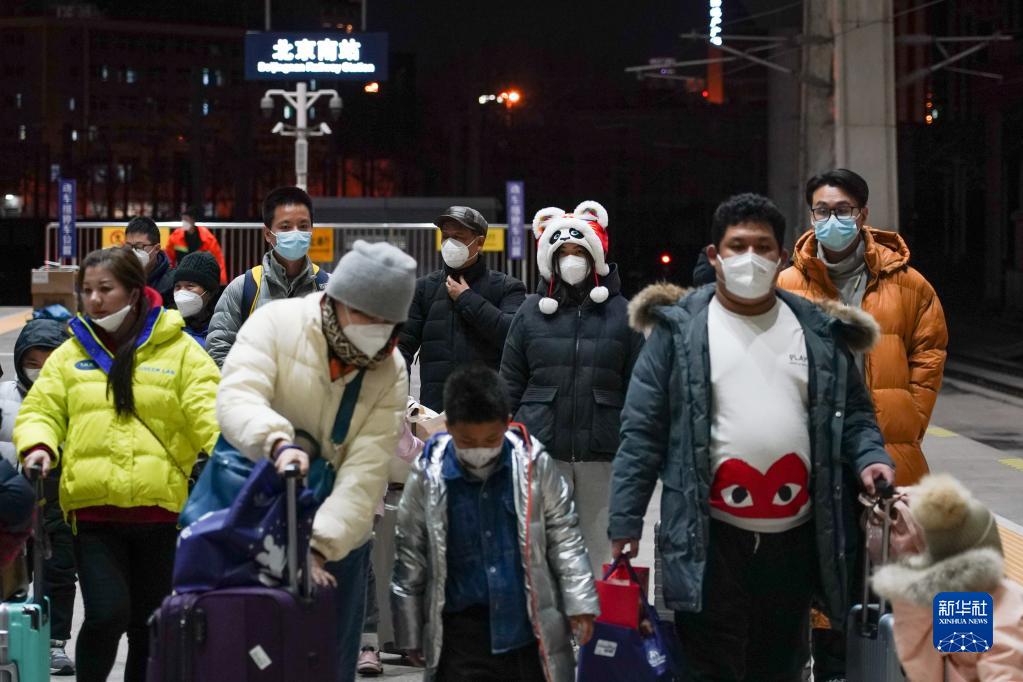 1月26日,在北京南站,返京旅客下車(chē)后準備出站。