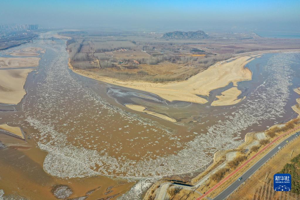 這是1月27日在黃河濟南蓋家溝險工段拍攝的淌凌(無(wú)人機照片)。