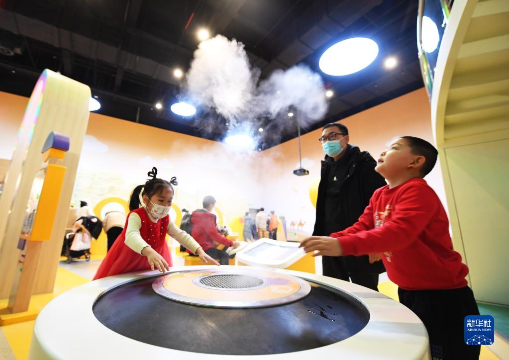1月27日,小朋友在河南省科技館新館“童夢(mèng)樂(lè )園”展廳體驗科技項目。