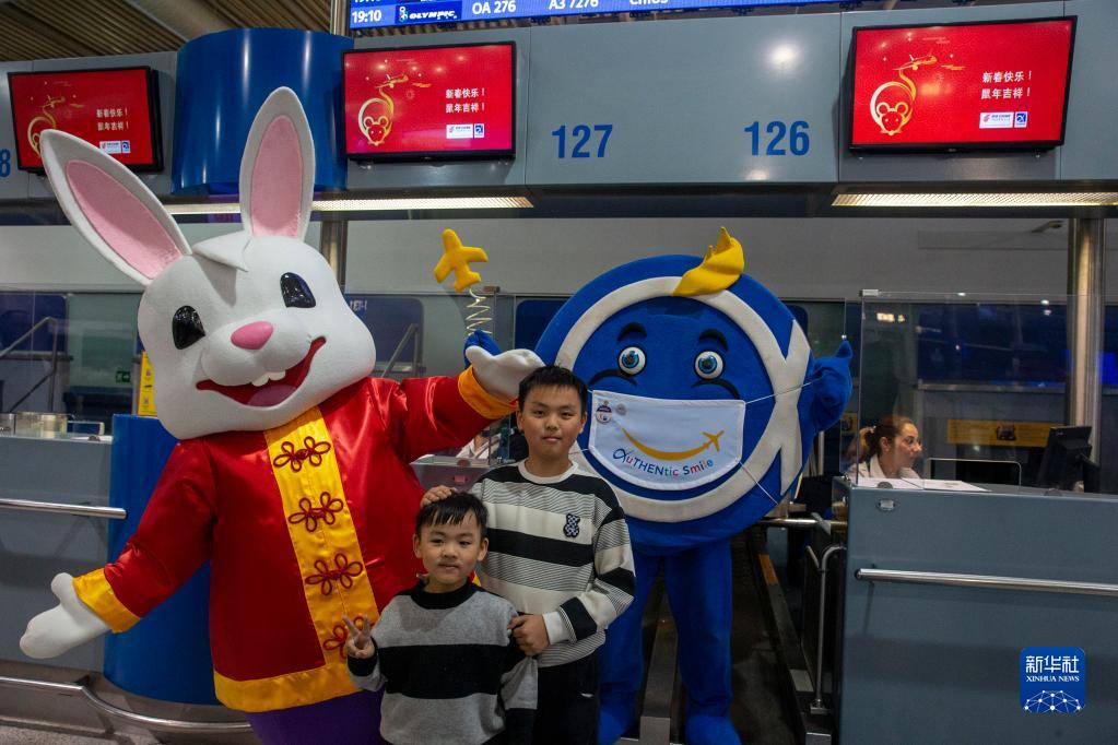 中國農歷兔年春節期間,希臘雅典國際機場(chǎng)推出兔子吉祥物,為乘客送上吉祥與歡樂(lè )。
