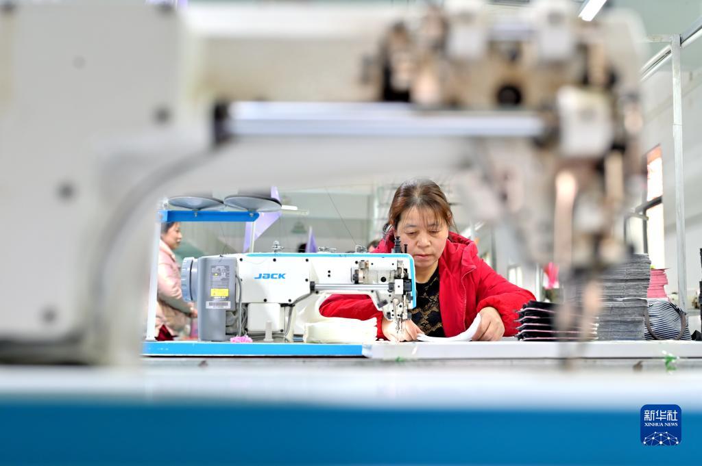 1月27日,在湖南省婁底市雙峰縣走馬街鎮一家箱包企業(yè),工人在車(chē)間內忙碌。