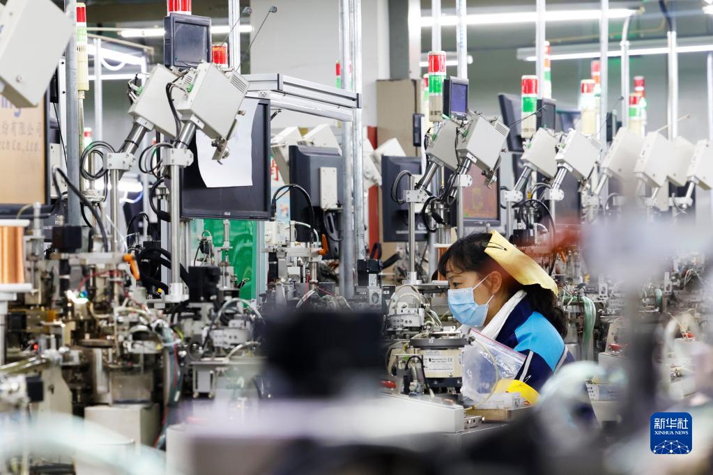 1月27日,在江蘇泗洪經(jīng)濟開(kāi)發(fā)區,一家電子元器件企業(yè)的工人在車(chē)間忙碌。